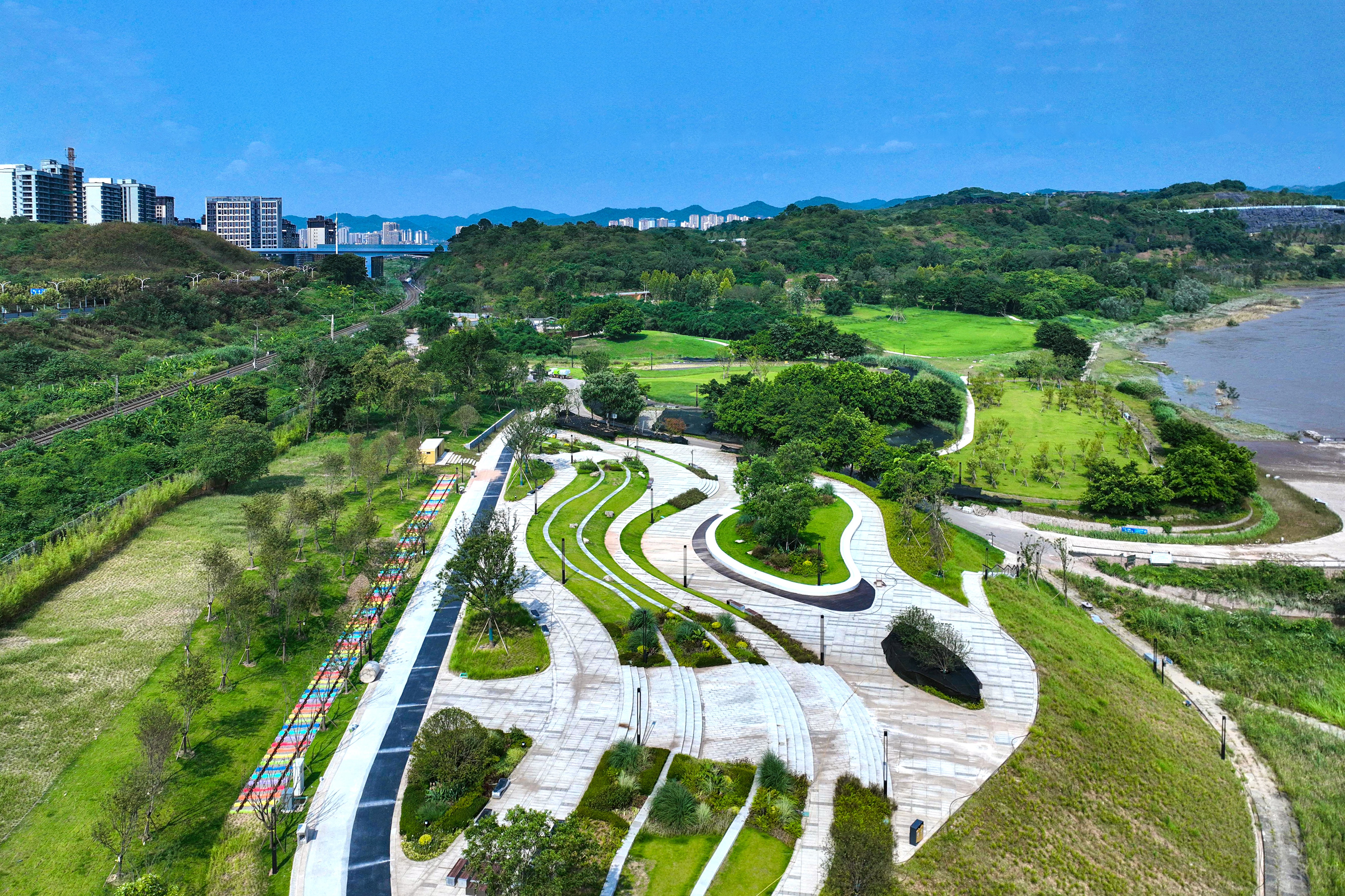 中冶建工承建的重慶“兩江四岸”治理提升長(zhǎng)江北岸線延伸工程釣魚嘴濱江段項(xiàng)目,是重慶市重點(diǎn)工程,也是“兩江四岸”治理提升重點(diǎn)項(xiàng)目,全長(zhǎng)約4.2公里,通過微改造,巧妙利用現(xiàn)有草海、森林、江灘等資源,彰顯原生態(tài)自然景觀,使生態(tài)美景連點(diǎn)成線,讓群眾享受更多開窗見景、推門見綠的城市空間,成為全國各地增植補(bǔ)綠、打造生態(tài)宜居城市的典范。
