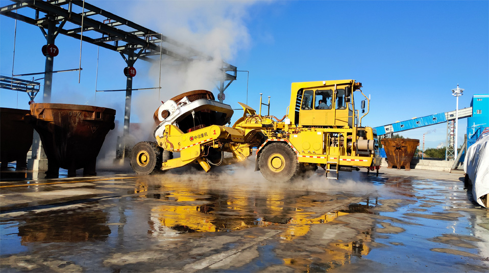 由中冶寶鋼研制的70噸鉸接式抱罐車,采用鵝頸鉸接型式,額定載重75噸,重載最高時(shí)速為每小時(shí)20公里,翻罐角度105度,最大爬坡能力8%,最小轉(zhuǎn)彎半徑9米。該車型應(yīng)用專利技術(shù)10項(xiàng),在國內(nèi)有色冶煉市場(chǎng)占有率超過75%,先后榮獲中國有色工業(yè)協(xié)會(huì)、中國鋼鐵工業(yè)協(xié)會(huì)科技獎(jiǎng),中國施工企業(yè)管理和中國循環(huán)經(jīng)濟(jì)協(xié)會(huì)專利獎(jiǎng)等榮譽(yù)。
